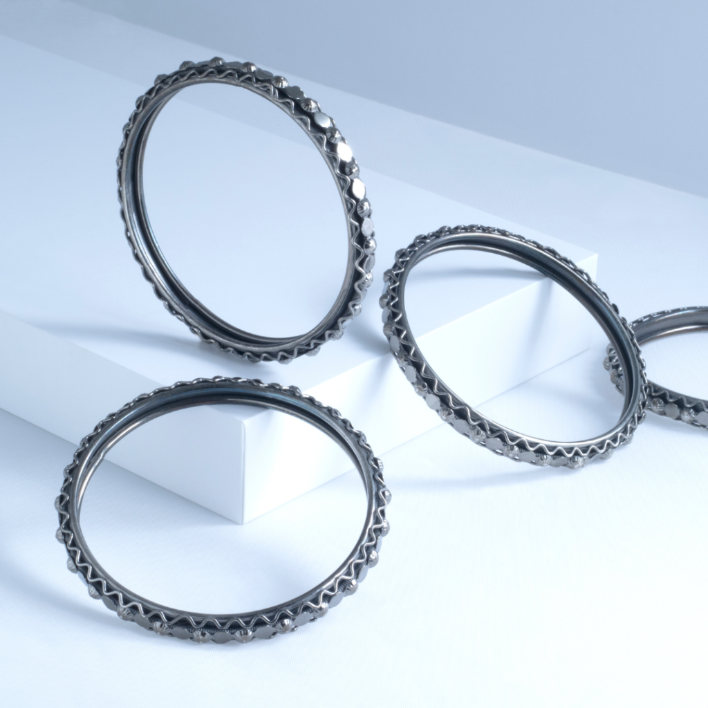 Traditional and modern silver bangles with intricate patterns.Comfortable, long lasting, and perfect for festive or wedding occasions.